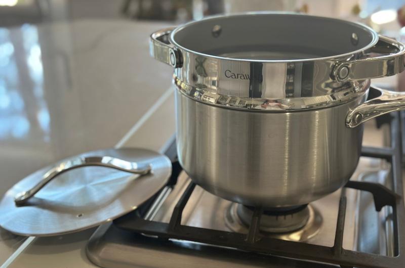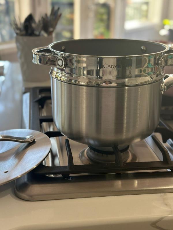 These pots are clearly quality as they are very heavy duty, and they look beautiful. However, it’s taking me a while to figure out how to use them. The direction say if stuff sticks to it, they’re too hot. The pots do require some preheating to get to the right temperature and that can take a bit. Then you need to cook on pretty low heat so that nothing sticks to it, so it’s a slower process that I’m used to. Still getting used to it.