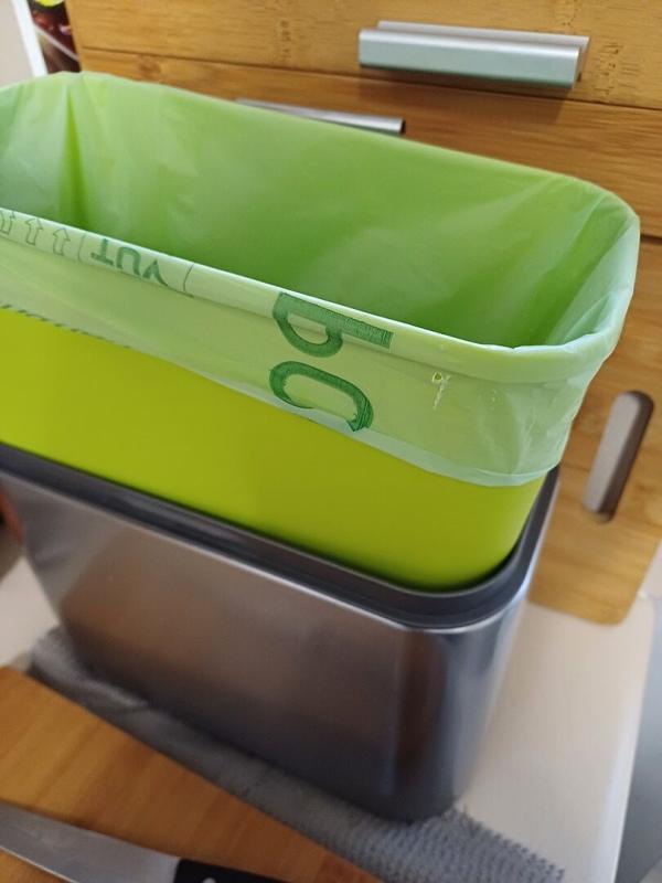 We love the Simplehuman compost bin. So sleek looking and easy to use. It just isn’t big enough for us. Would like it twice as big. The brochure it came with showed one but I couldn’t find it anywhere online.