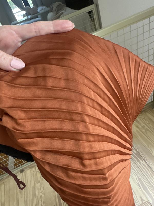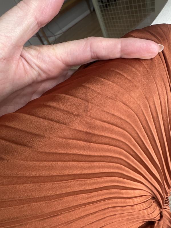 Will be returning- Dress arrived and had clearly been worn. There are oil or water drip marks all over it and it looks like it has been previously drycleaned because of darker sweat stains at the neckline. Smells like perfume. It’s shocking that returns apparently do not go through quality control before being reprocessed for another customer. Outside of the staining and the smell- dress is pretty color but the fabric is polyester and not as nice looking or feeling as pictured on the website. (Did not try on so can’t comment on fit)