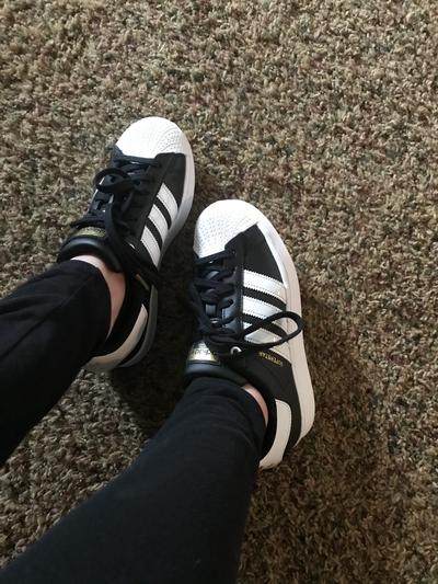 Love these Superstar shoes! This is the first pair of platform type shoes I've tried and wasn't sure if I'd like them, but fell in love the first time wearing them! So comfortable & cute! They ran a little big for me, so I went down 1/2 size.