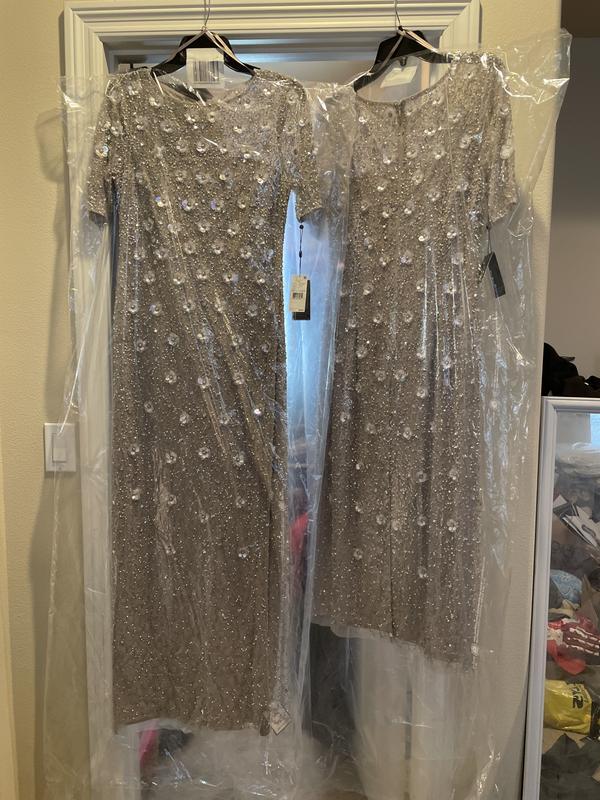 Beautiful dress!! I sized up , didn't fit. However, if I reorder the correct size I would still have to get the hem altered. So not saving at all. Made for a tall women. Beautiful Dress.