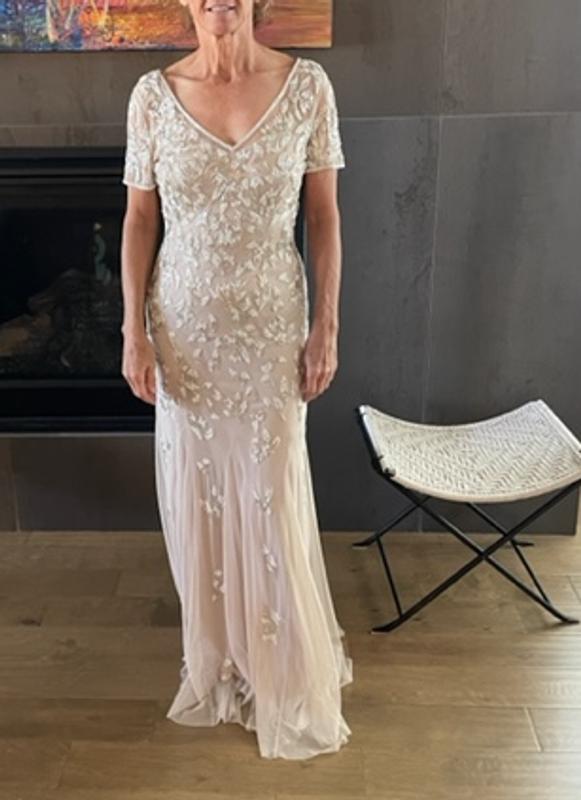 The dress is perfect for the mother of the bride dress. It looks exactly as it did online and the sizing is true.