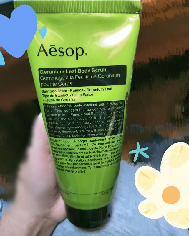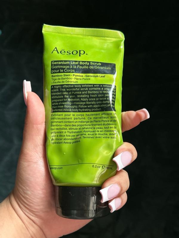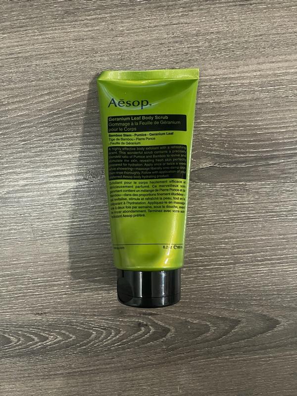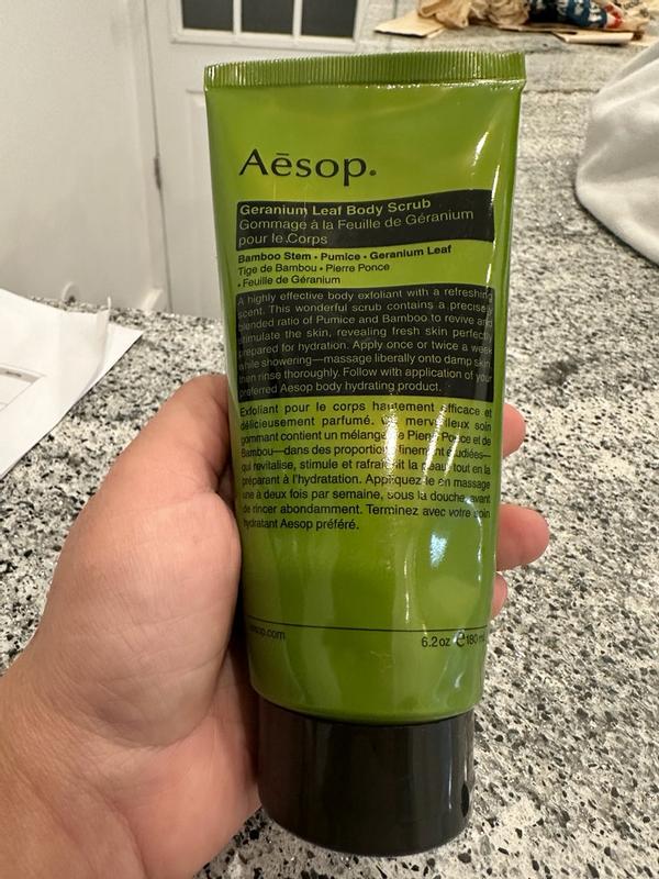 The Aesop Body Scrub is incredible! The texture is gritty but gentle, leaving my skin silky smooth and refreshed. It exfoliates deeply without irritation, and the earthy, citrus scent feels luxurious and calming. My skin feels renewed and hydrated after every use—an absolute favorite!
