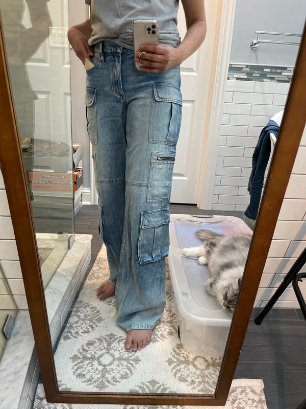 Cay High Rise Wide Leg Baggy Cargo Jeans in Brea Blue