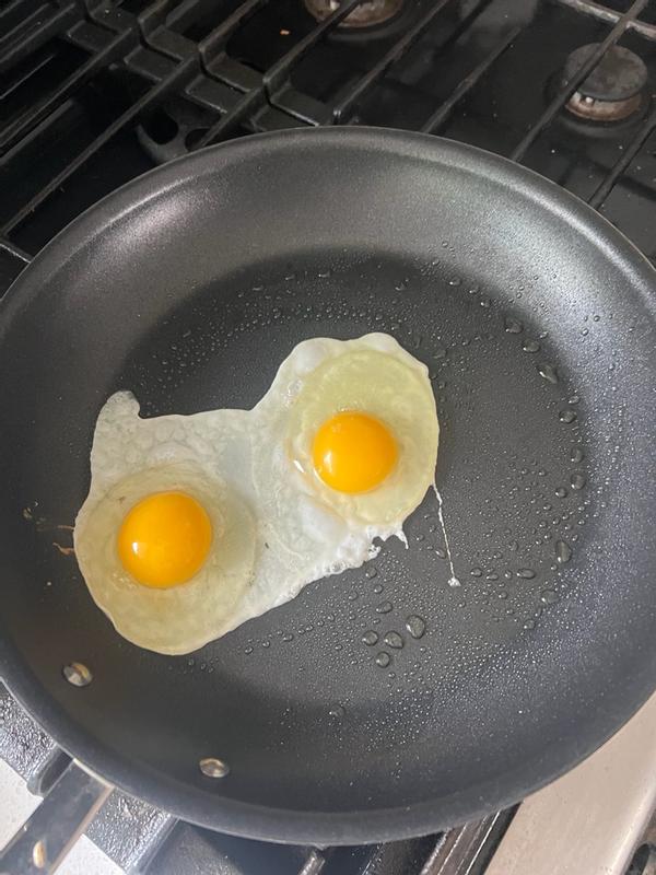 I tested the D5 Pro pan by cooking pancakes and sunny-side up eggs. The pancakes cooked evenly and the eggs came out perfect and were very easy to flip with one hand. The pan is heavier than a traditional fry pan but the weight feels in line with high-quality and durable cookware. When washing: the metal rivets where the handle meets the pan are not non-stick, so take a little bit of extra work to clean. It’d be nice if the entire interior surface could be non-stick in the future. I like the look of the design with a non-stick interior and a stainless steel exterior - I don’t need non-stick on the outside. I really like this fry pan and can see it being one of our go-tos for daily cooking. This fry pan is bonded, engineered, and assembled in the USA.