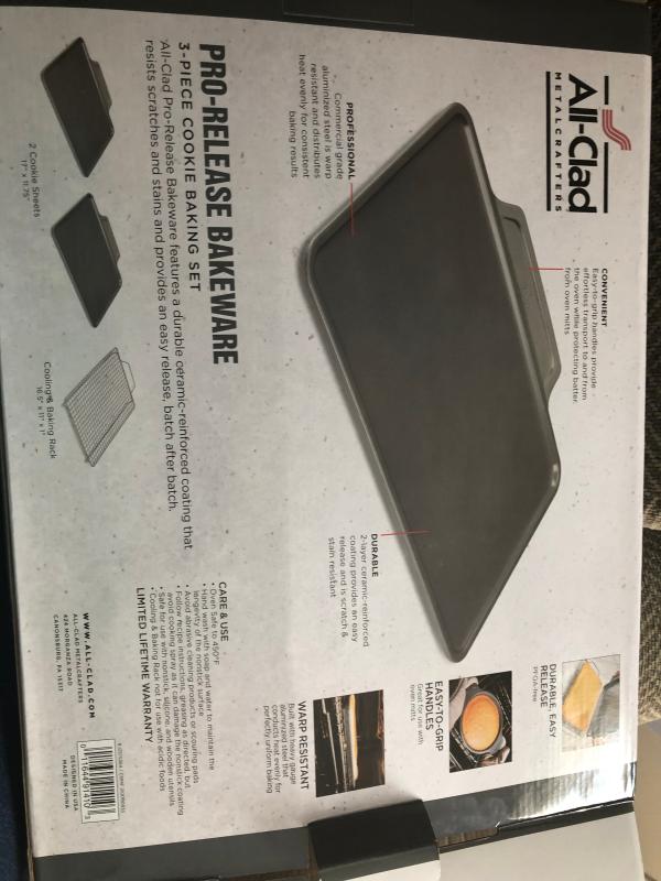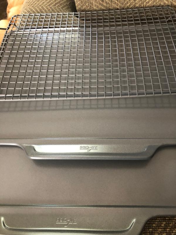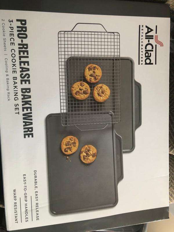 this was one of the smartest purchases i have made in a while. i have baking sheets that are probably 30 years old so i decided to treat myself! wow, they are perfect. easy to get in and out of the oven because the handles are easy to use. the rack was just the icing on the cake. :-)