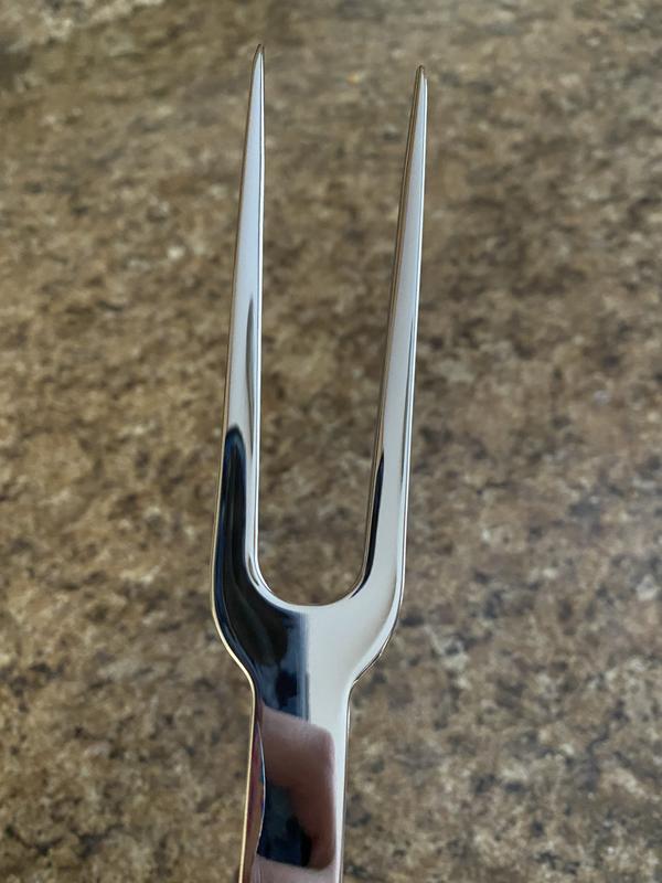 It's just a fork! A very sturdy fork, it holds nicely and it works great with meats and chicken, to hold in place to slice, easy to clean. Can't wait to use it again on Christmas Eve! Totally recommended!!!