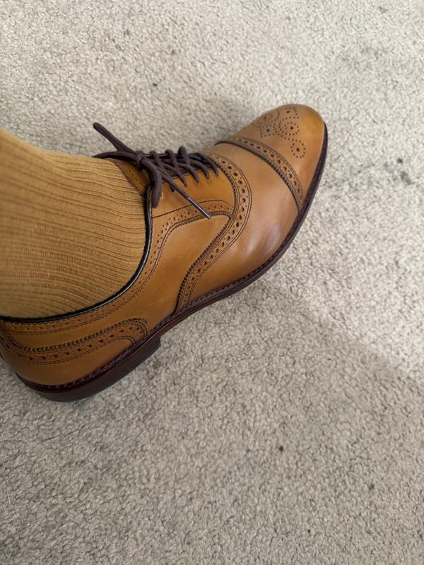 The Strand Captoe in Chili brown is a great shoe--easy to style up or dress down. The size is consistent with other AE dress shoes. No complaints.