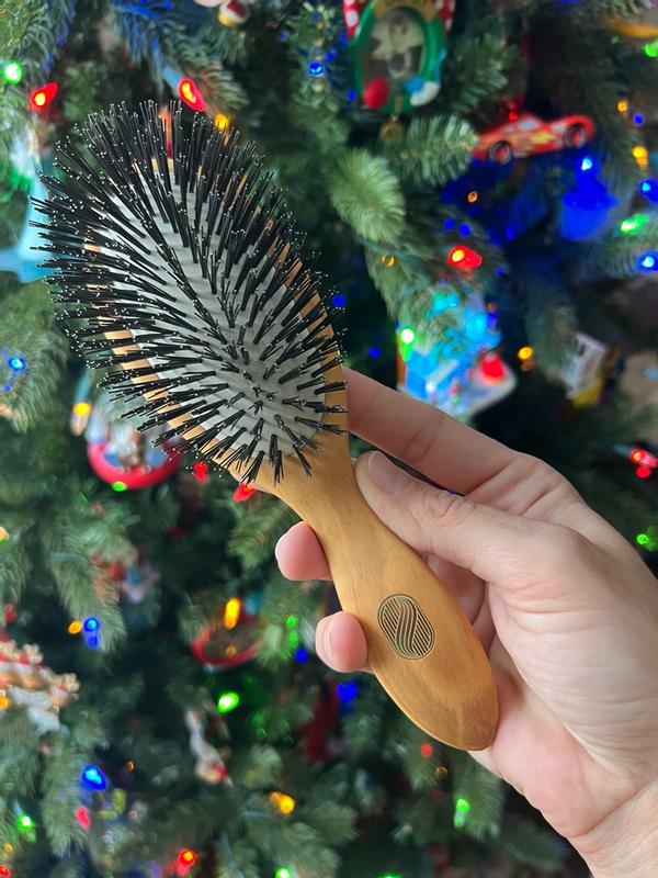 A little Christmas miracle for my hair! I go a LONG time in-between washes and this is claiming to do exactly what it says to do! It physically cleans hair starting at the root source, the scalp! I have been noticing significant less fallout and shedding and definitely not as much build up on my scalp altogether. My ends are noticeably more conditioned and am seeing less breakage when brushing. The bore bristles distribute the oils efficiently down the strands gently, coating every hair shaft entirely.v this is the Rolls-Royce of hairbrushes! Packaging is absolutely beautiful and makes it extremely user-friendly to travel with.