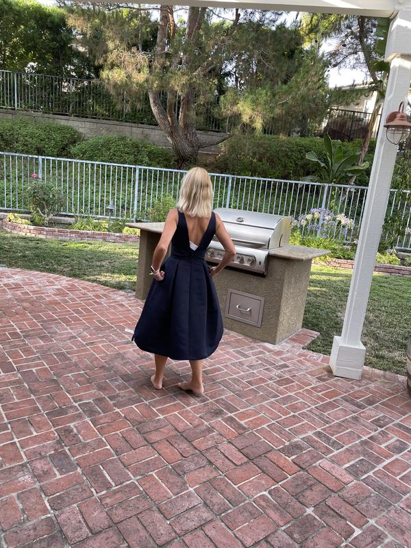 Considered the white version as an option for my upcoming "city hall" wedding. Beautiful fabric and it fit TTS for me, but oh my! it is way too low cut for me! I am a a 34 B/C, so not busty by any means, but I felt so exposed. I felt that it would be an uncomfortable dress to wear seated, at dinner because the upper portion does gap a bit. I might reconsider the black version as a cocktail dress, but unfortunately, this is not my wedding dress.