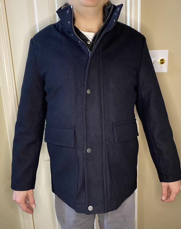 This coat is a good looking coat for the cooler weather. The fur collar is removable and I really like that option. Classy navy blue color with soft wool touch. Really can’t go wrong with this coat. Big pockets for hands or to stuff your gloves in. I think this coat is gonna last a long time and stay fashionable too!