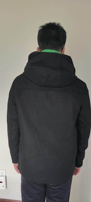 Pros: -very stylish, heavy weight coat -plush hood keeps the wind out and head warm. -buttons snap very cleanly and no issues with the zippers -lots of pocket space -movement is a little restricted but it isn’t terrible. Very comfortable to wear. -hugs the shoulders nicely -nice silky interior -size runs true to large and it fits my husband’s arm length perfectly! Cons: slightly restricted movement while wearing It’s a fantastic jacket and looks very stylish. We highly recommend it!