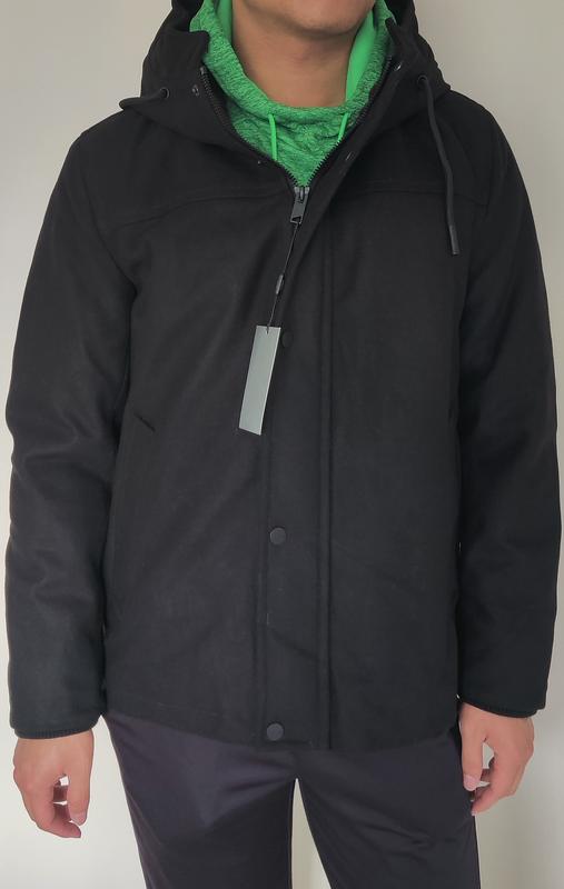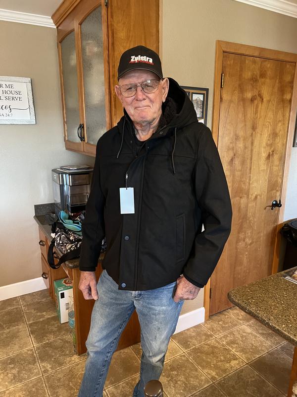 This jacket fits my husband very well. It’s well made and very warm. The attached hood has a black Sherpa lining in it. It also has two pull strings in the front for extra closure to keep you warm. It also zips and buttons down the middle. My husband likes the warmth of the jacket but felt it was a little heavy around his neck. The outer jacket has two button pockets that button on the inside. This jacket is perfect for the fall weather because it will keep you very warm and my husband is pleased with it!
