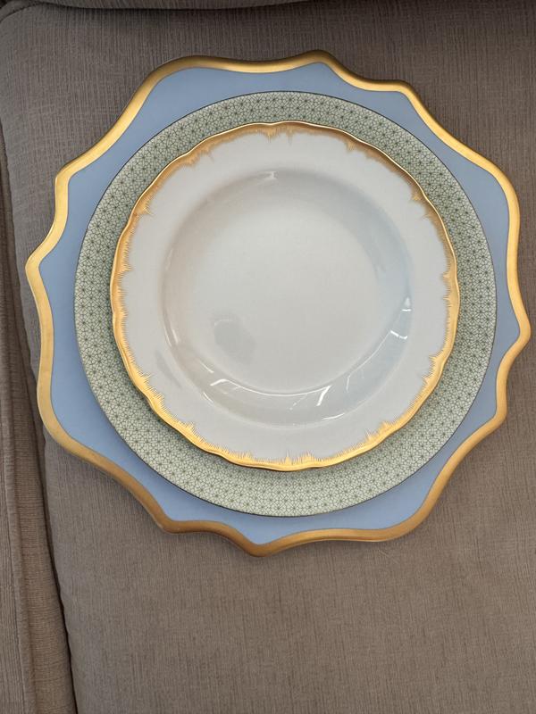 Well packaged, super quick shipping. Beautiful charger plates. They came in perfect condition, despite the box looking a little mishandled by the shipping company. Will definitely purchase here again.