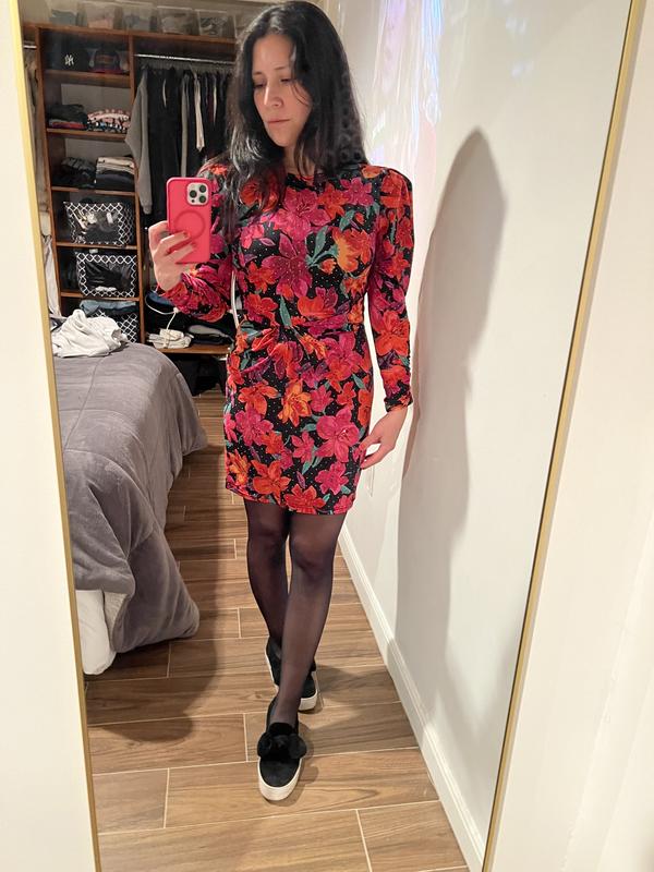Amaryllis Floral Knit Long Sleeve Mini Dress - Exclusive