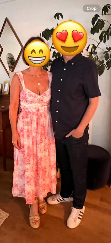Wore this for my birthday dinner. Absolutely love the pattern. Great for someone like me who mostly wears solids because the pattern is dainty and airy feeling. Only issue is the straps are a little loose even when adjusted to the tightest spot but I’m short so maybe on a taller girl this wouldn’t be an issue. Wore it without a bra, very comfortable.