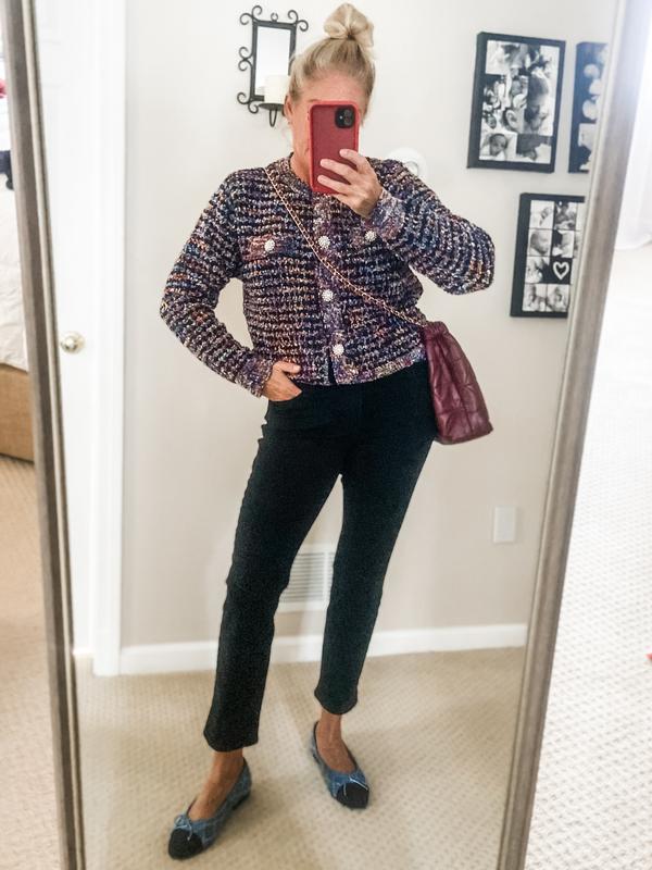 The sweater jacket is absolutely stunning. The snap buttons are very decorative and the colors a beautiful blend of pastel colors. I wear a size large, and the fit is perfect. This jacket can be worn with a pair of jeans or nice pair pants. Perfect for the season we are in.