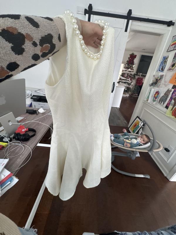 Cute! Cute! Looks amazing on. flattering, the pearls around the collar make it look so feminine and pretty. Because it’s fitted I when one size up L