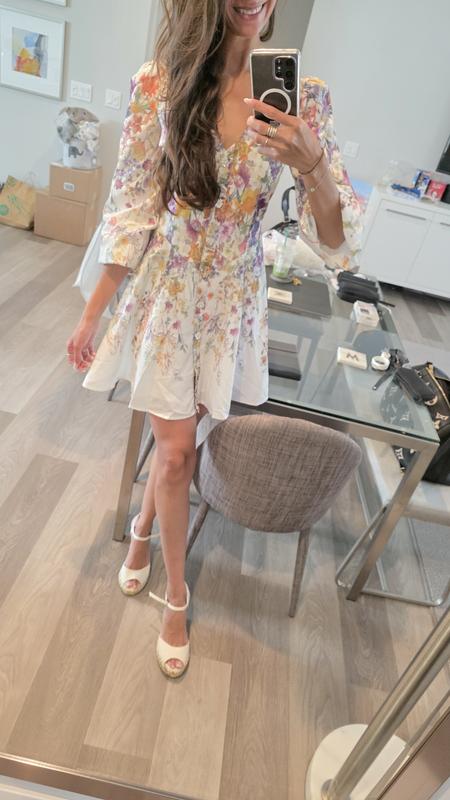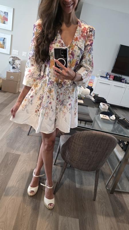 Great quality dress, looks and feels much more expensive. Ordered XS. For reference, I’m 5’6”, 126lbs, 32c/26/37. The sleeves are a perfect length as is the dress.