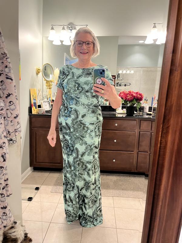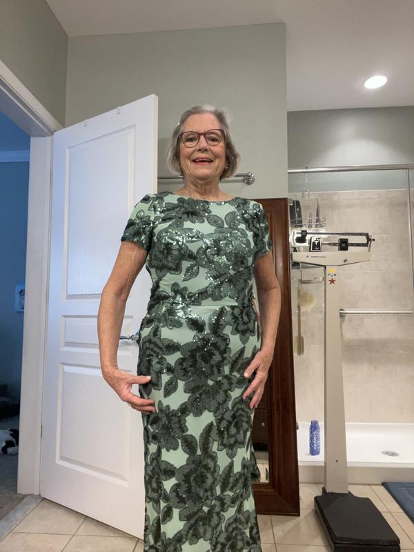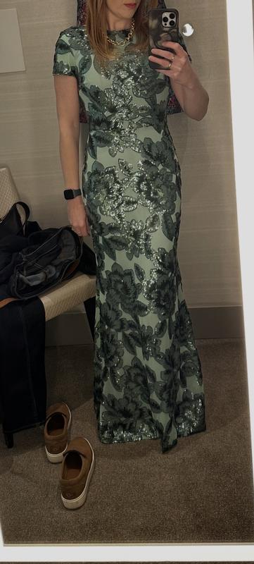 This dress is gorgeous. The color is beautiful and it fits like a glove. I’m am only 5’2” and usually dresses are very long requiring me to have them hemmed. But this dress is the perfect length with heels and doesn’t need any alterations