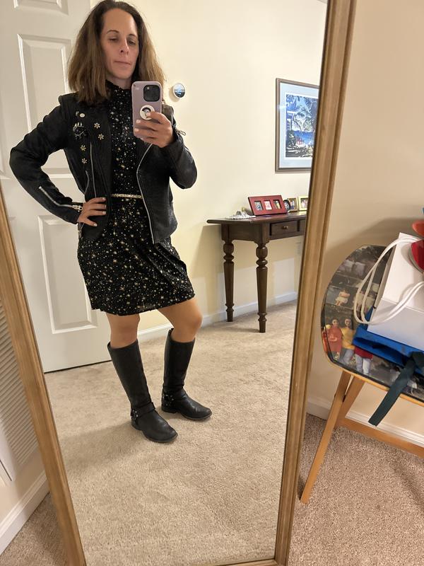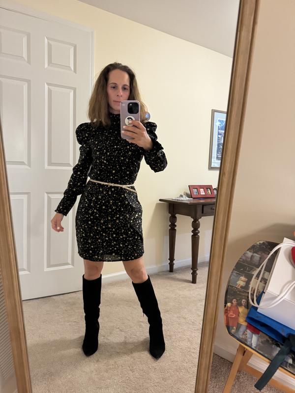 This a cute little dress. By little I mean it’s short, but mini is in the title. I solved that issue by layering it over a longer straight skirt. I love the exaggerated puff shoulders, but I can see how it’s not the right fit for everyone. I altered the sleeves by shortening and tapering them since it’s too much with the neckline, ruching at the waist. For $29 use your imagination and make it your own.