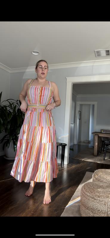 I recently picked up the Aqua Multistripe Crop Tank from Bloomingdale's, and it’s quickly become a favorite! The colorful stripes are perfect for summer and add a fun pop to any outfit. Fit and Comfort The fit is just right – true to size and really comfortable. It's cropped, but not too short, which I love. The fabric is lightweight and breathable, making it great for hot days. It's very light fabric so perfect for summer Design and Quality The stripes are super cute and go well with high-waisted jeans or shorts. Or the accompanying Skirt! The fabric is soft and has held up well in the wash, with the colors staying bright. Overall Thoughts I’m giving this tank 5 out of 5 stars. It’s a great piece for casual summer days. I love how easy it is to throw on and go. Definitely happy with this purchase!