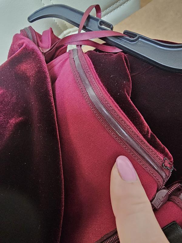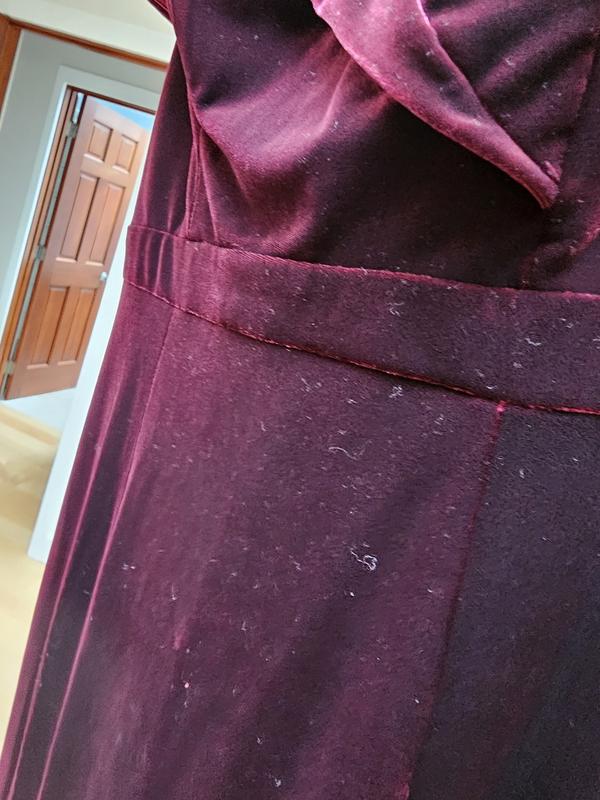 Beautiful burgundy velvet dress. It rans small. I ordered a 6 regular . I wear a 6 petite. I had to go to the store to try it. A size 10 will fit better. Other brands I had no issue with the size.