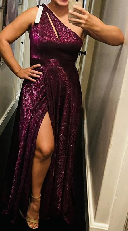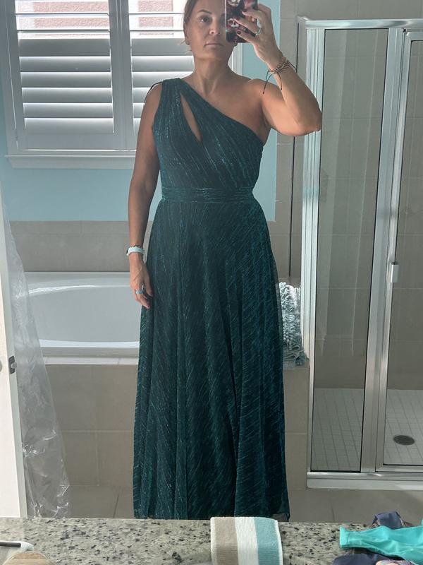 One Shoulder Crinkled Metallic Gown - Exclusive