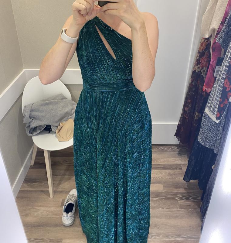 I received a ton of compliments for this dress. First, the color is absolutely stunning. Second, the silhouette is very flattering. I recently had a baby and it did a good job of accentuating the right areas. Would recommend.