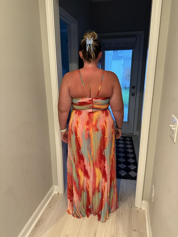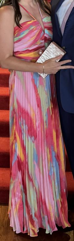 Beautiful gown that’s perfect for a summer outdoors event. Vibrant colors!
