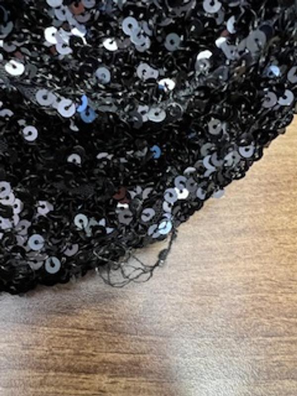 This is a comfy, zippered, lined , sparkly silver sequin top…. but the sequins are all over my bedroom floor from trying the skirt on!