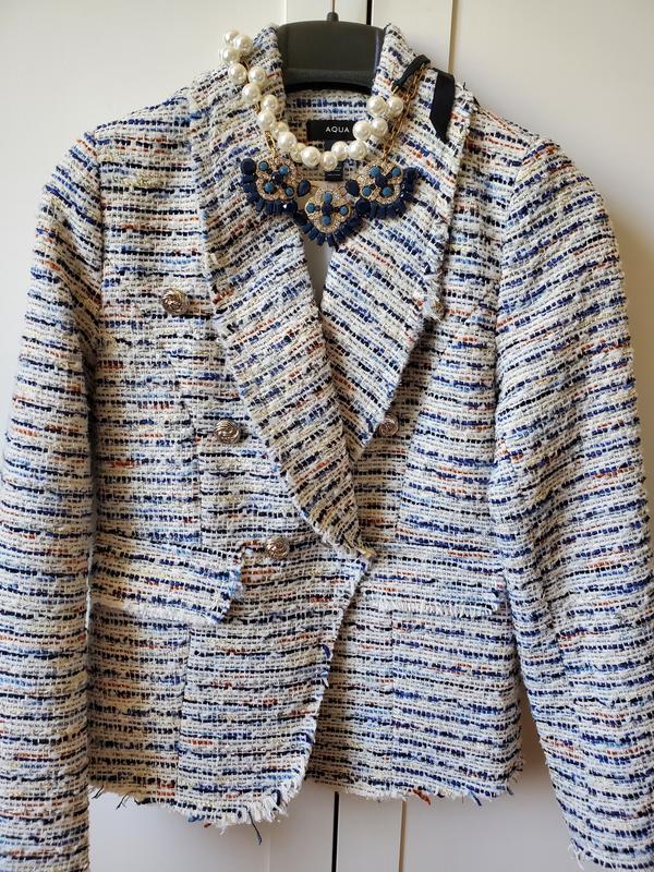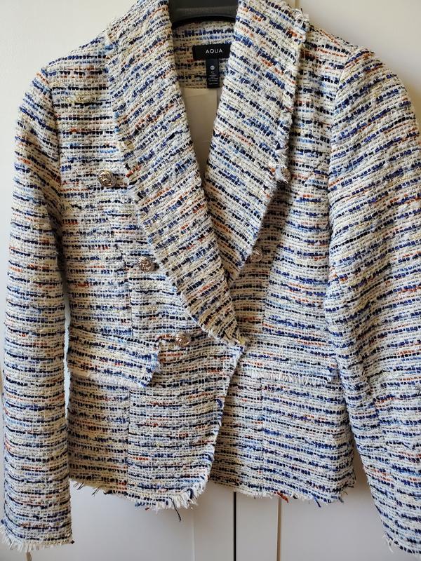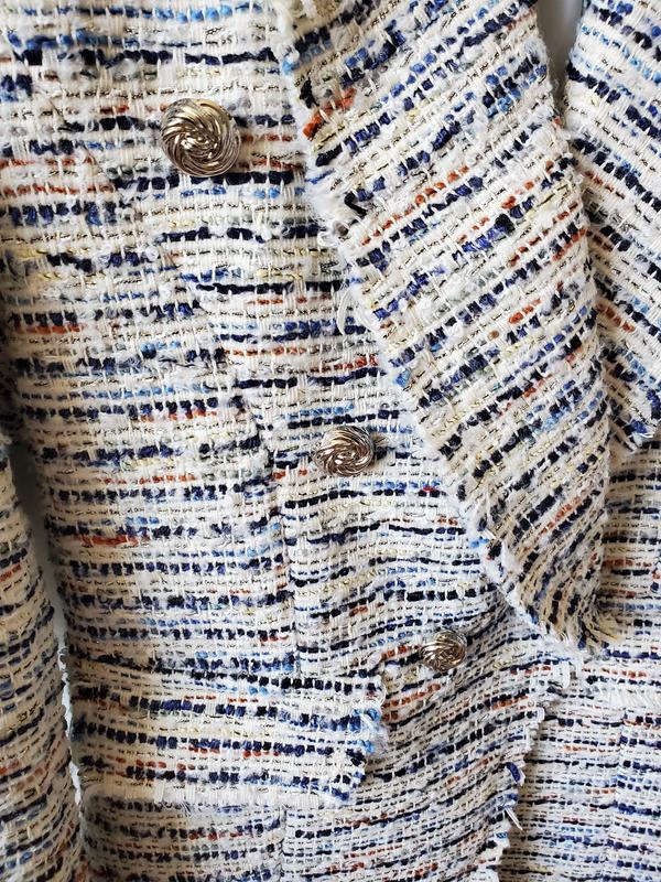 Cute jacket, some of the threads from the tweed are loose but it looks like it's part of this look.