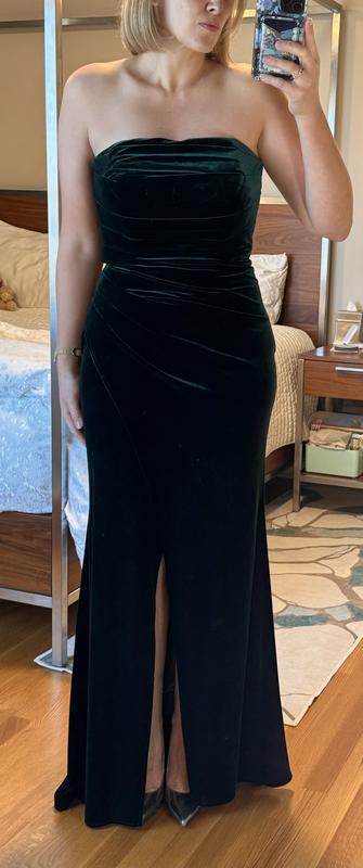 I bought this as a maid of honor dress for my friend's wedding in September. The quality of the fabric and construction is amazing. The dress does skew darker than green, almost reads as black in some lighting. I rated it 4/5 as I wish there was an internal corset or strap to really support the top, not just a zipper.