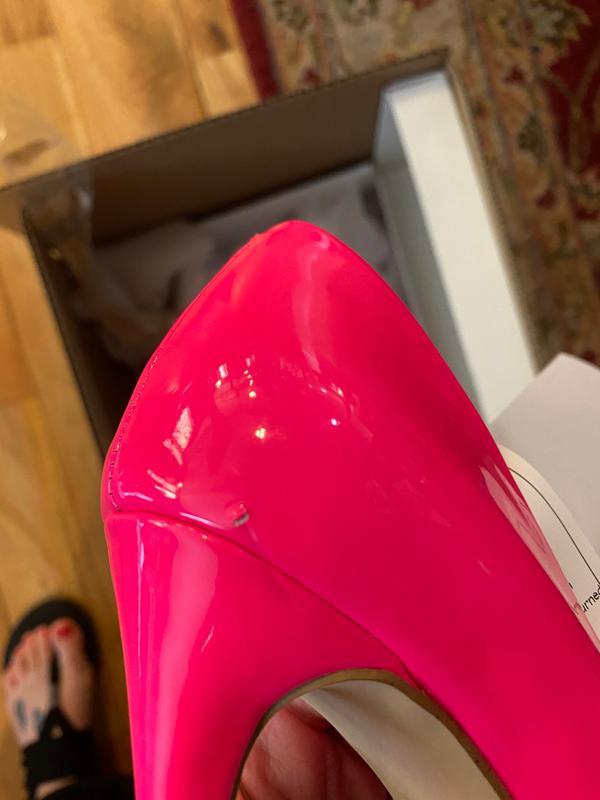 Just received these in the mail and I will be returning. They have a small tear in the heel and a black smudge. It’s also not quite the color in the picture. The picture is more fuchsia neon pink but this shoe is very bright Neon pink.