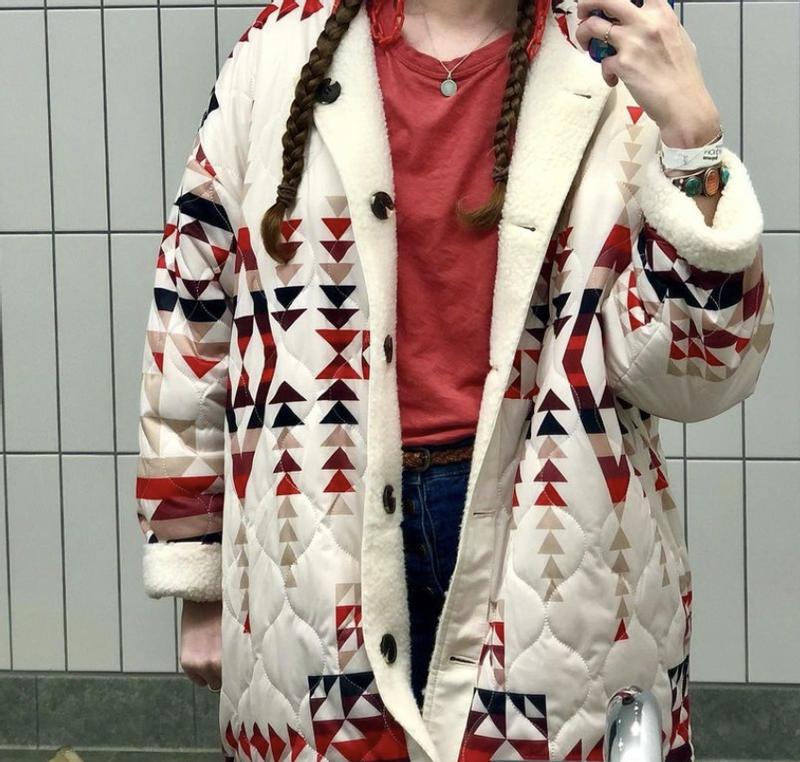 This print and the color palette are great. The reversible design with deep pockets on both sides is awesome. The sherpa lining is a tad on the itchier side but nothing uncomfortable, just not super soft. The only thing that bothered me is that it runs HUGE. I bought the XS and I usually wear XS or S in shirts but this thing fit like a legit XL. The sleeve length was normal, and that's where you see the XS sizing, but as far as the width, it is super wide and boxy, even for an 'oversized' fit. I'm glad I got the XS, but if there was an XXS, I would have exchanged it. But since I had my eye on this for a while, and the sale price was great, I just decided to keep it. It mostly lives up to what I was hoping it would be and it's very unique and fresh.