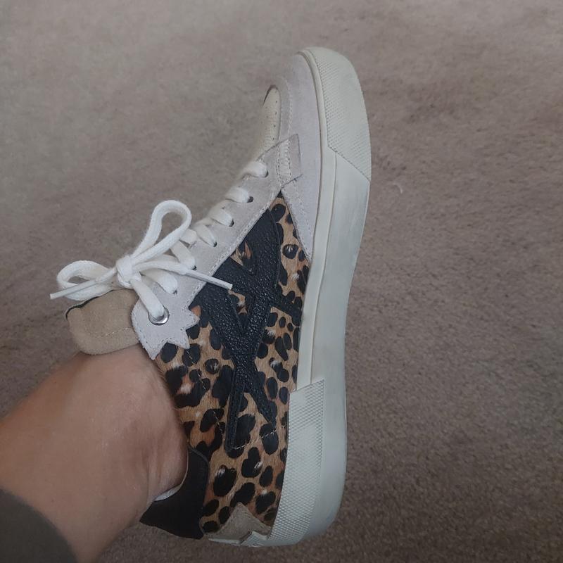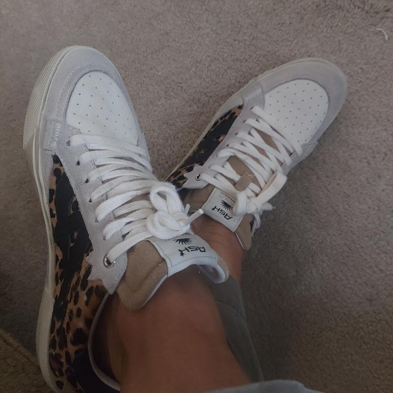 On trend sneaker that fits TTS. Great quality and very comfortable (even without socks) The leopard detail is hair on hide and not printed fabric. I like these even more than my Golden Goose, and they are a fraction of the price. I highly recommend.