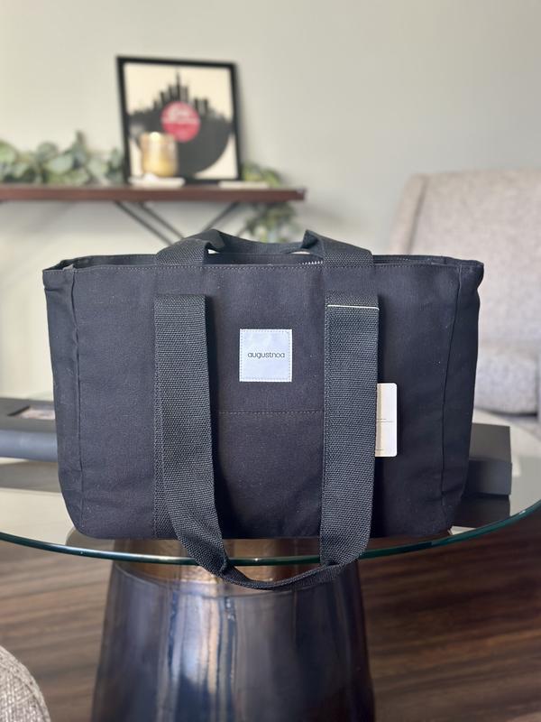 I have been following Augustnoa for a while and was really excited when I saw they had a tote. It is simple, modern and beautiful. I love that they have a focus on sustainability across their products and packaging. Not only is it beautiful, but it has so much room for your stuff - water bottle, book, notebook, headphones, protein shaker, and computer. I could probably fit more if I wanted too. If you are debating this bag, you should go for it.