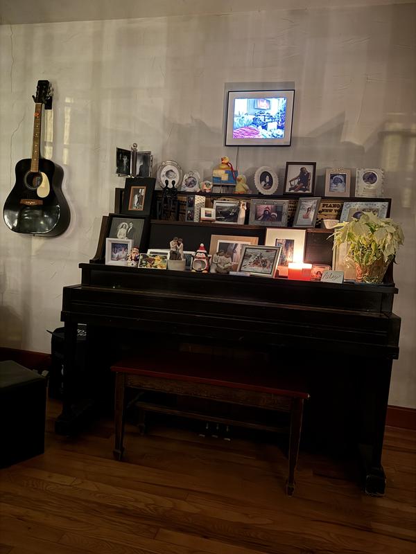 The Aura Frame is a magnificent gift for our nephew's family. As an Air Force pilot being deployed across the globe and having a young family, the Aura frame can keep him connected to his wife and daughter. In addition, the entire extended family can add photos if authorized, and he can add his own. The 15 inch screen is highly visible and the matte finish is a plus.