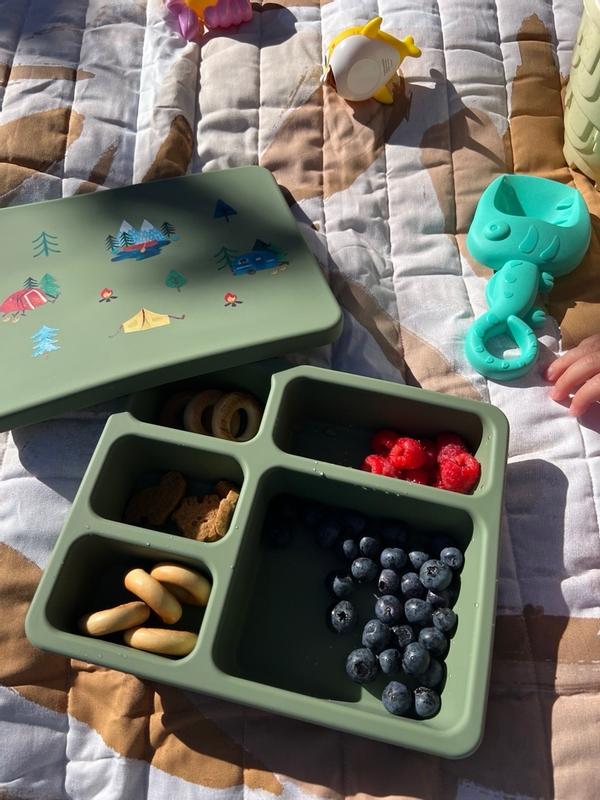 Great box to pack our little one's food for the entire day. Seals surprisingly well (zero leaks so far!) and is easy to clean. It has no strange smells/taste that we've experienced with other silicone tableware; plus no parts that could break and no plastic. Will likely end up getting another one for our older kid, who has a plastic bento box (and maybe for myself!).