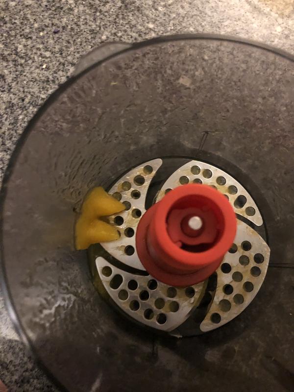 Despite chopping fruits in small pieces (which defeats the purpose) I still ended up with large chunks in the puree no matter how long I processed and stirred and processed again. Better results with my small food processor.