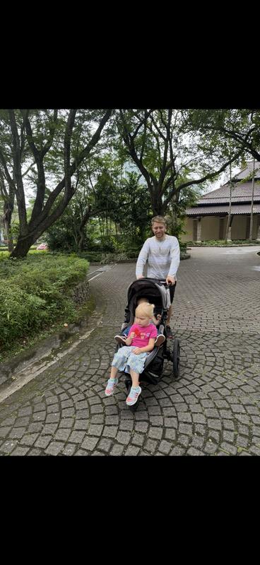 We love our jogger! It strolls so smoothly and easy to pack up in our car. My little one is so comfortable and loves the snack tray. We use this more than our regular stroller because it’s light weight and so much easier to get in and out of the car. Also, so much more affordable than the bob.