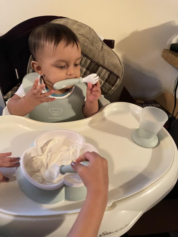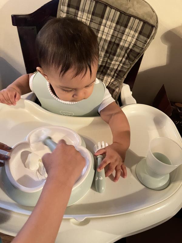 As a mom of a 9-month-old baby who has embarked on the journey of baby-led weaning, this set has gotten a lot of use! I am a working mom so appreciate that the set is dishwasher safe and the heavy plate helps to prevent any food-spilling accidents. are perfect for tiny hands learning to self-feed. The spoon and fork size and shape make them easy for my little one to grip and maneuver, helping her to learn self-feeding skills. The bib is also easy to clean and helps keep baby’s clothes mess-free. I also adore the yellow color! Lastly, I like that it is BPA-free, which I look for in all of our household products.