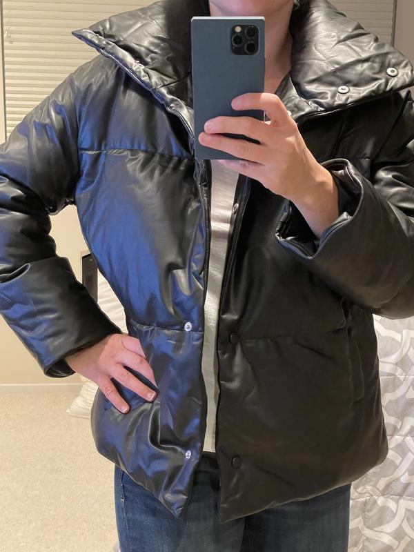 Oversize Faux Leather Puffer Jacket