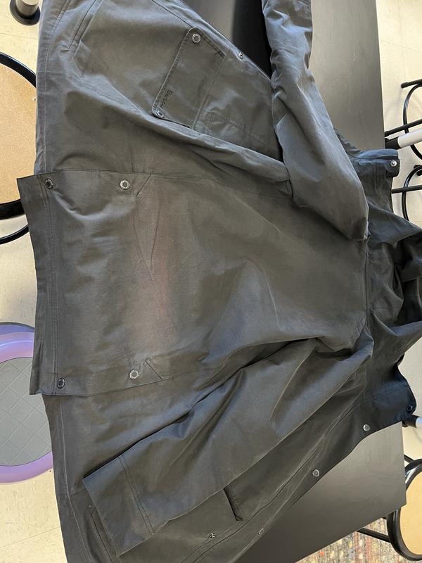 Great jacket for the in between weather and rainy days. Love the abundant pockets and collar. .