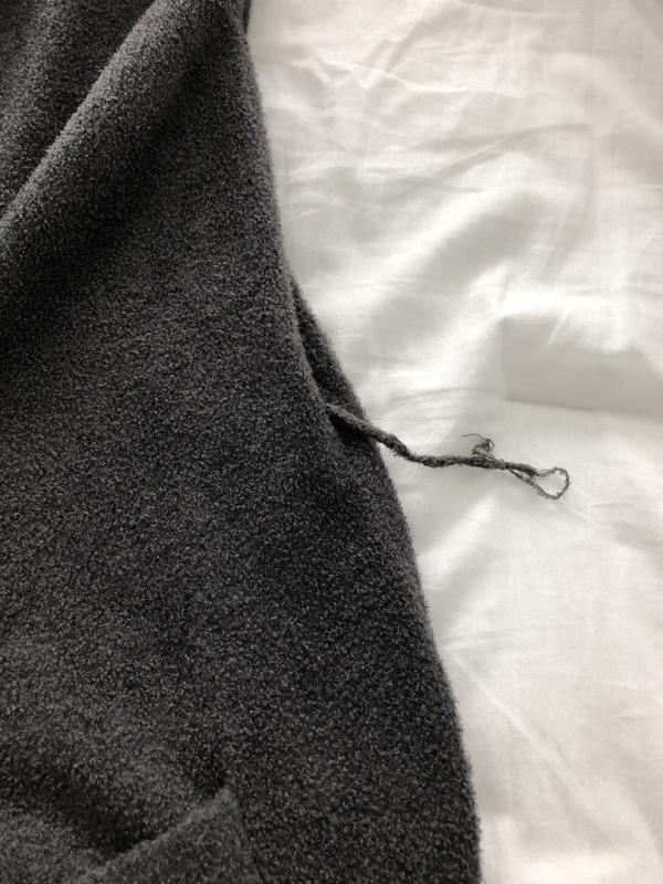 This robe is so soft and comfy, but too long (I’m 5’ 5” and usually wear a size large) and after one washing (as directed) looks cheap and worn out. I have six (6) other BFD robes and none look like this after many wears/washings. This robe was purchased online from the BFD Memorial Day sale at 30% off outlet prices but I’m very disappointed.