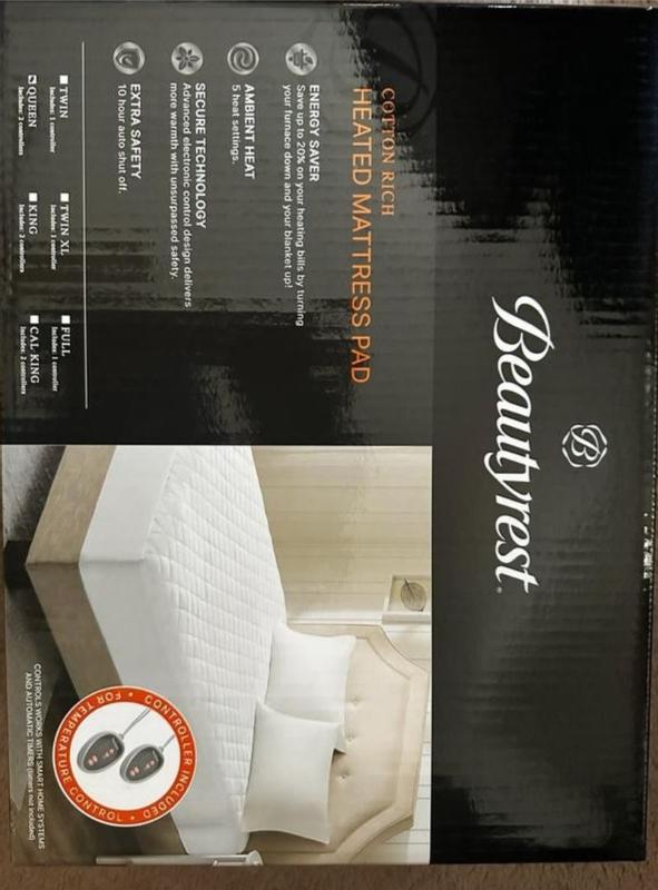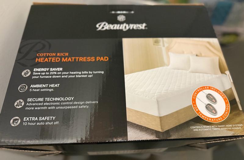 I received Beautyrest Cotton Blend Electric Mattress Pad in Queen Size (white) free to try for my honest opinion. This has 5 temperature settings which is great!! It has a 10 hour auto shut off feature which is very nice for days I am in a hurry and forget to turn it off. It is super comfortable & sooo warm! I absolutely love climbing in my bed after a long day of work with this heated mattress pad. I sleep so much better with it!