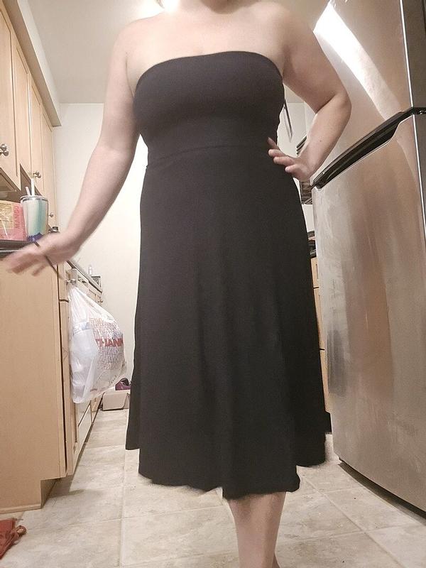 My only critique is that i was expecting it to be true black but it's more of a heathered black. Super cute and flattering and comfy though! Runs true to size.