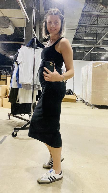 Best maternity dress. Super comfortable and stretchy while still looking flattering. Got it on a recommendation from another pregnant person and it's been my favorite maternity buy! As a heads up you may want to size up - especially if your boobs have gotten a lot bigger.