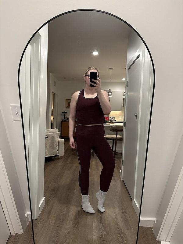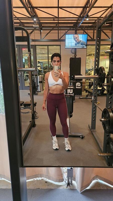 Honestly my new favorite pair of leggings! So soft & comfy, yet durable enough to make it through my solidcore workouts. Plus, the burgundy color looks AMAZING! I got so many complements on this set at the studio. ☺️