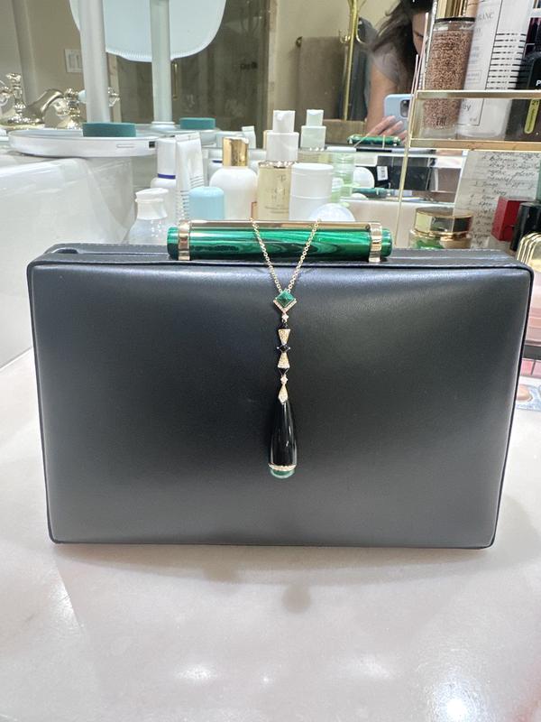Black Onyx, Malachite & Diamond Pendant Necklace in 18K Yellow Gold, 18"